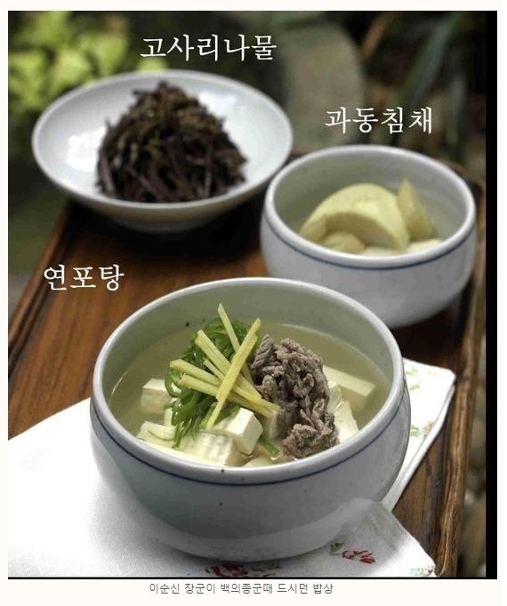 이순신 장군이 좋아하고 평소 즐겨드시던 밥상은?