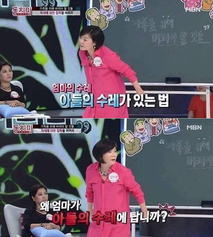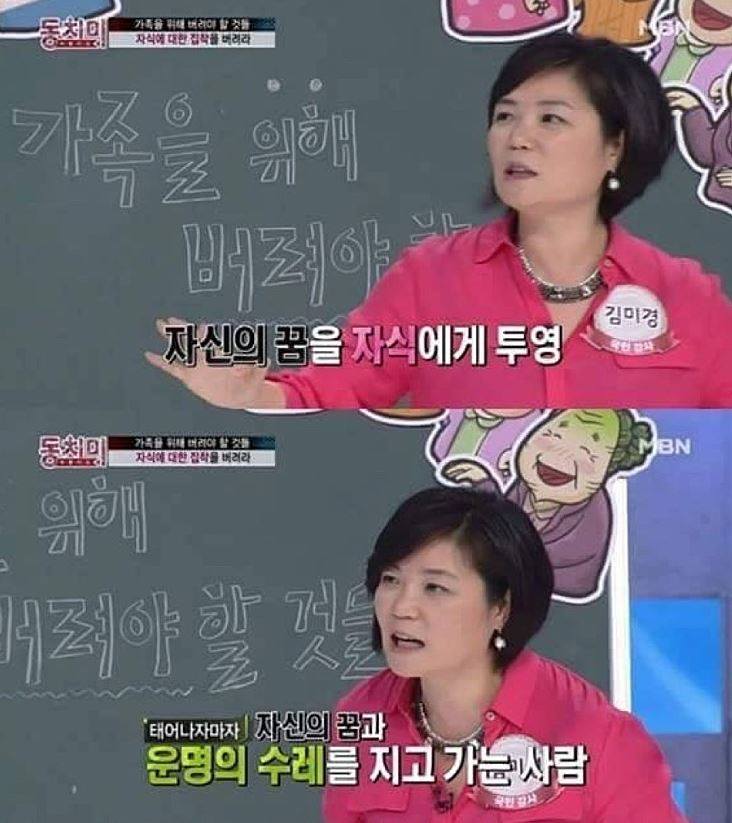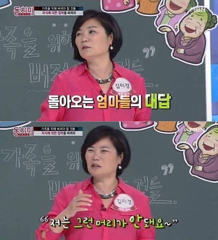 MBN ‘동치미’ 에 출연했던 김미경 강사는 “가족을 위해 버려야 할 것들” 이라는 주제로 강의를 한 적이 있어 각종 온라인 커뮤니티에서 큰 화제를 모았다.