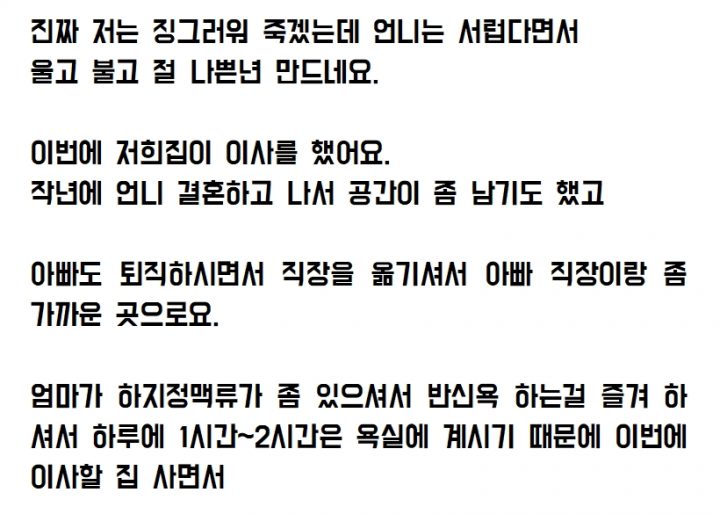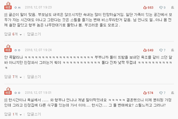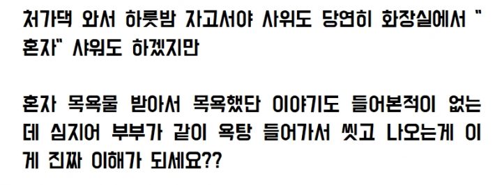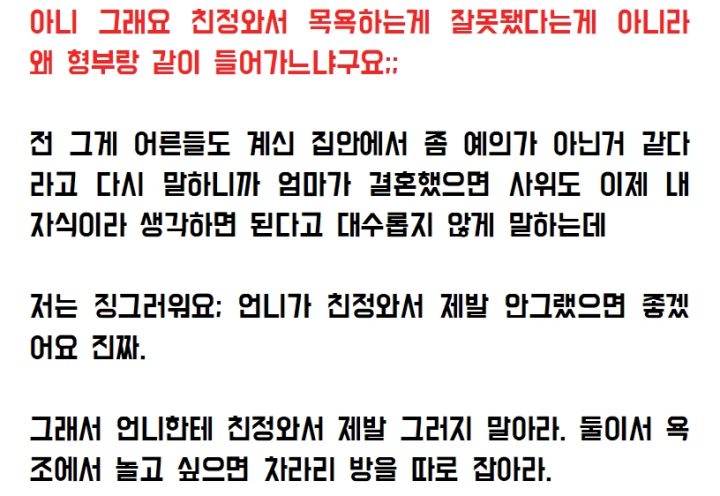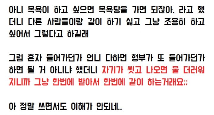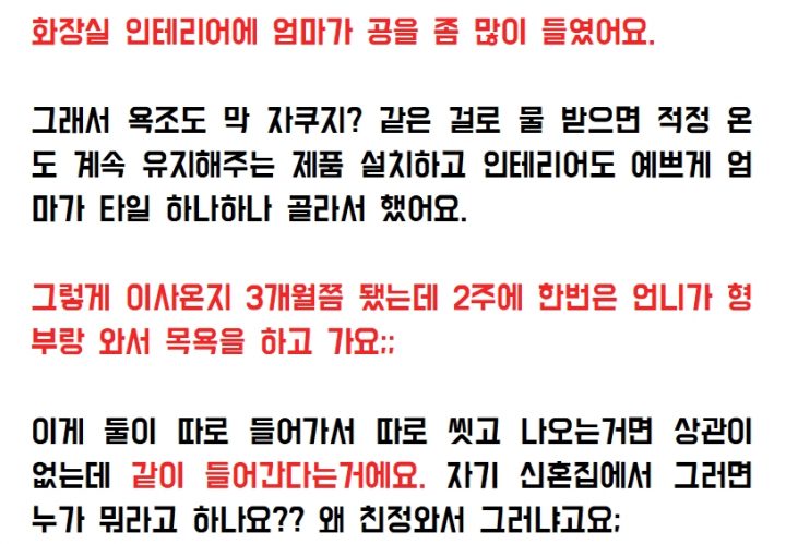 친정에 오면 언니와 형부가 목욕을 항상 같이 한다는 글쓴이의 사연.