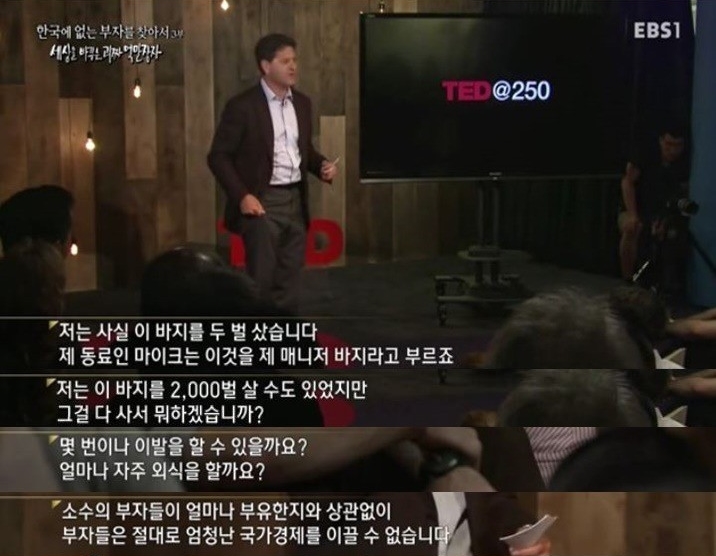 이 사람은 닉 하나우어(Nick Hanauer)라는 재벌로 자신을 미국의 상위 0.01%에 포함되는 사람이라고 소개합니다. 그가 중점적으로 이야기하는 것은 낙수효과로 대표되는 신자유주의자들이 말하는 경제정책이 점점 경제 불균형을 강화하고 있으며, 이 상황을 도덕적인 잣대가 아니라 경제적인 관점으로 봐서 국가 경제에 도움이 되지 않는다고 강조합니다.